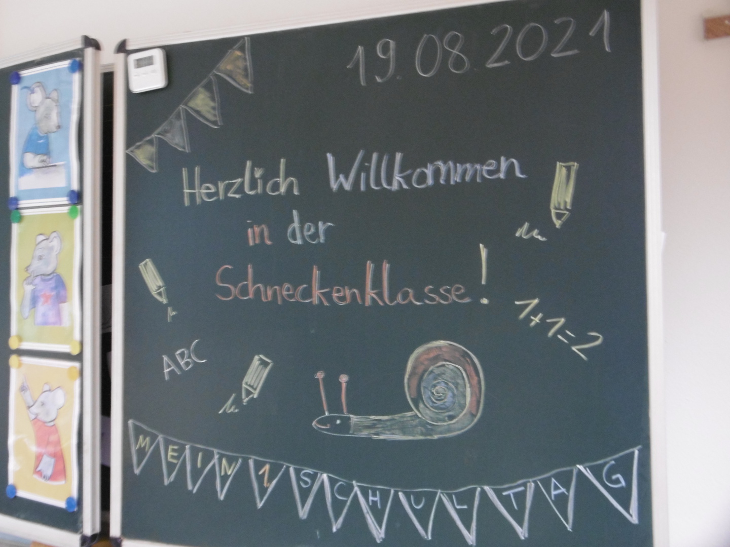 Am 19.08.2021 war es soweit: Die Kinder der Schnecken-, Känguru- und Fuchsklasse wurden eingeschult.