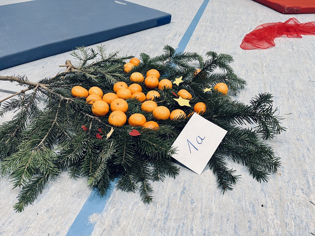 1. Begrüßung durch Frau Drude 2. "Feliz navidad" mit Boomwhacker- Begleitung (4a) 3. "Der Weihnachtsmann tanzt so" (1b) 4. Klanggeschichte "Rudolf, das Rentier" (4b) 5. "In der Weihnachtsbäckerei" (1a) 6. "Frau Holle" (1d) 7. Rap "Du bist der Weihnachtsmann" (4c) 8. Der Wichteltanz (1b) 9. Lied "Lichterketten" (4d) 10. Gemeinsamer Abschluss "Merry Christmas - frohe Weihnacht" |