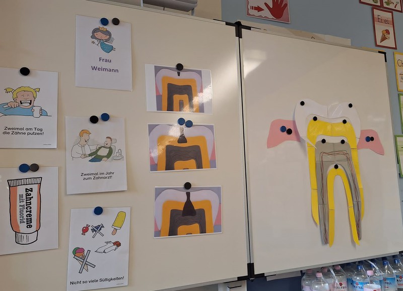 Der zahnärztliche Dienst besuchte vom 18.9.23-21.9.23 den 2. und 3. Jahrgang und vermittelte den Kindern durch einen Stationslauf die Notwendigkeit einer richtigen und regelmäßigen (mindestens 2x am Tag) Zahnpflege.