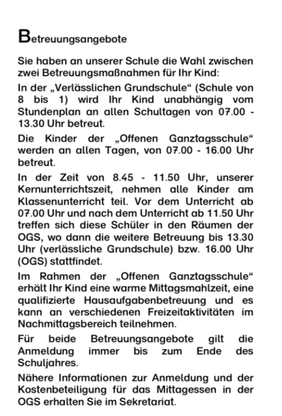 Alles Wichtige zu unseren Betreuungsangeboten "OGS" und "Verlässliche Grundschule" finden sie hier.